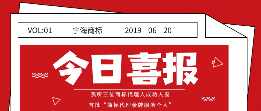 祝贺我所三位商标代理人入围首批“商标代理金牌服务个人”!